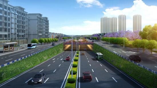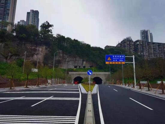 重慶市重鋼片區(qū)百花村隧道道路工程位于重慶市重鋼片區(qū),是重慶市重難點建設項目,設計道路左線全長1104.628米,其中隧道長660.525米;右線全長898.092米,其中隧道長552米。設計終點段標準路幅寬度為36.5米,隧道標準路幅寬度為9米,道路等級為城市次干路,雙向四車道,設計車速為40km/h,含隧道1座(按左、右線實施)。項目通車后,實現了大渡口重鋼片區(qū)東西貫通,進一步加強了九宮廟商圈與濱江片區(qū)的聯(lián)系,激活了豐富的濱江岸線資源,對加快重鋼片區(qū)的產業(yè)轉型步伐、提升片區(qū)土地利用價值、促進大渡口區(qū)社會經濟發(fā)展具有重要意義。