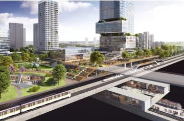 作為成都首批次場(chǎng)站綜合開發(fā)的14個(gè)TOD示范項(xiàng)目之一,成都行政學(xué)院站TOD總投資超150億,項(xiàng)目位于成都東進(jìn)橋頭堡,以站點(diǎn)為核心,周邊半徑3公里范圍內(nèi)共規(guī)劃有6條軌道線。成都行政學(xué)院TOD是成都東西向干線2號(hào)線(已運(yùn)營)和成都第二條環(huán)線9號(hào)線(規(guī)劃)的換乘站點(diǎn)。根據(jù)《成都市軌道交通場(chǎng)站一體化城市設(shè)計(jì)導(dǎo)則》,行政學(xué)院站為組團(tuán)級(jí)站點(diǎn)。項(xiàng)目由大型商業(yè)綜合體、五星級(jí)酒店、超甲辦公、創(chuàng)意街區(qū)、住宅、學(xué)校等業(yè)態(tài)構(gòu)成,以“東進(jìn)門戶、創(chuàng)驛綠谷”為主題打造為以公共交通結(jié)合慢行體系為主要出行方式的“活力中心”。結(jié)合功能板塊,形成“交通圈”“商業(yè)圈”“生活圈”相互支撐的城市格局。通過加強(qiáng)站點(diǎn)與產(chǎn)業(yè)功能區(qū)銜接,提升營商環(huán)境、吸引高端要素聚集,打造創(chuàng)新開敞空間;健康運(yùn)動(dòng)場(chǎng)景依托豐富的綠色資源,滿足多層次人群需要的體育運(yùn)動(dòng)場(chǎng)景,完善綠道體育消費(fèi)新場(chǎng)景;生活?yuàn)蕵穲?chǎng)景提供多種業(yè)態(tài)布局,同時(shí)強(qiáng)調(diào)多元、互動(dòng)、公共性,提升街區(qū)的活力。