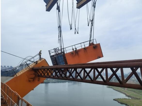 “拱肋已與Y構(gòu)懸臂精準(zhǔn)連接!”隨著地面對(duì)講機(jī)傳來激動(dòng)的聲音,在歷經(jīng)五個(gè)多小時(shí)吊裝作業(yè)后,3月26日,由重慶設(shè)計(jì)集團(tuán)市建科院公司監(jiān)理的潼南東升大橋南岸左幅首段拱肋節(jié)段精準(zhǔn)安裝就位,標(biāo)志著大橋正式進(jìn)入拱肋安裝階段,向提籃式鋼箱拱橋高精度合龍目標(biāo)邁進(jìn)重要一步。