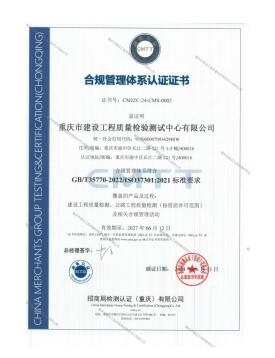 近日,重慶設(shè)計集團(tuán)市建科院公司檢測中心順利通過招商局檢測認(rèn)證(重慶)有限公司合規(guī)管理體系審核,并獲得合規(guī)管理體系GB/T35770—2022國家標(biāo)準(zhǔn)和ISO37301:2021國際標(biāo)準(zhǔn)認(rèn)證證書,標(biāo)志著檢測中心在合規(guī)管理體系建設(shè)方面邁上發(fā)展新臺階。