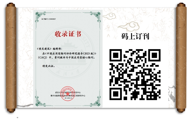 《重慶建筑》是重慶市住房和城鄉(xiāng)建設委員會主管,重慶市建筑科學研究院有限公司主辦、面向海內(nèi)外公開發(fā)行的優(yōu)秀山地建筑科技期刊。自2002年創(chuàng)刊以來,《重慶建筑》一直堅持高標準審稿編稿,確保所刊文章具備較高的科研價值、實用價值和可讀性,對讀者的研究工作和工程實踐提供了切實的幫助和指導。多年來,我刊立足重慶山地建筑特色,服務山地優(yōu)秀建設項目和前沿建筑科技成果的宣傳推廣,為重慶市各區(qū)縣面向全國推廣地方建筑文化和地方建設成就,做出了重要貢獻。雜志現(xiàn)已被中國知網(wǎng)等多個權威數(shù)據(jù)庫全文收錄,并被評為CACJ中國應用型核心期刊。