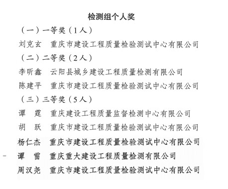 檢測(cè)組個(gè)人比賽共8個(gè)名次 市建科院占據(jù)6席